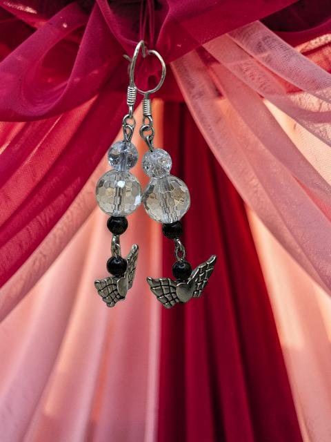 Boucles d'oreilles en pierres naturelles de Cristal de Roche de 10 et 6mm et d'Obsidienne de 4mm.
