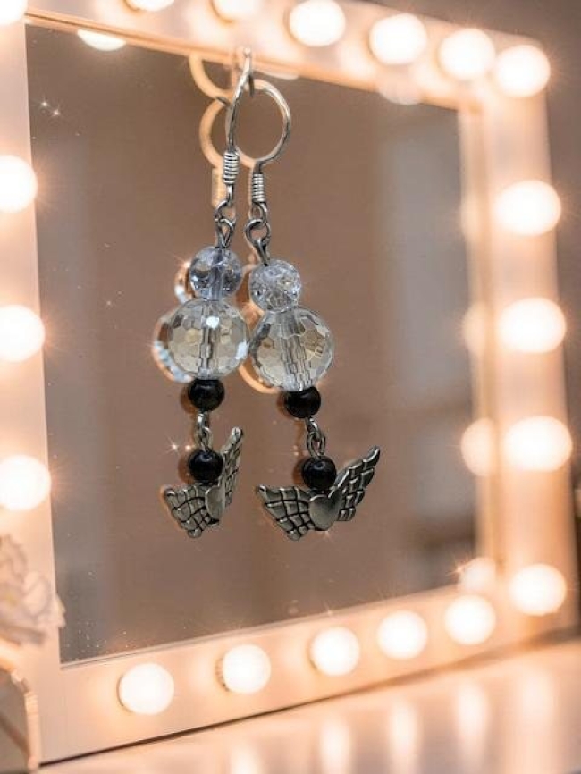 Les perles facettées captent délicatement la lumière, tandis que les détails métalliques apportent une touche raffinée et subtile. L'ensemble offre un équilibre harmonieux, facile à porter au quotidien comme lors d'occasions plus habillées.