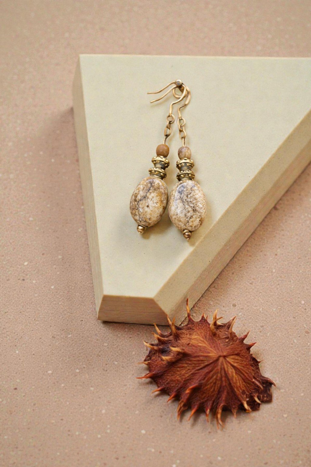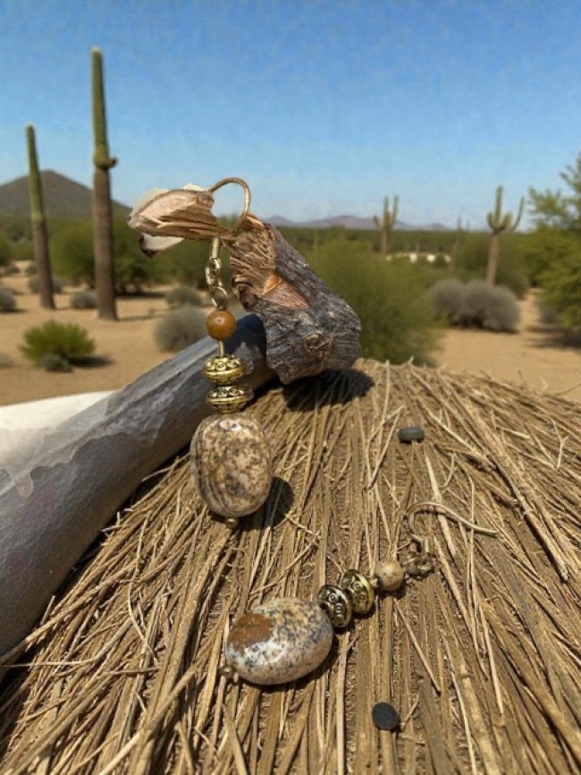 Ces boucles d'oreilles en jaspe paysage, séduisent par leur nuances chaleureuses et minérales, inspirées des paysages naturels. Simple et élégantes, elles apportent une touche authentique et raffinée à toutes vos tenues.