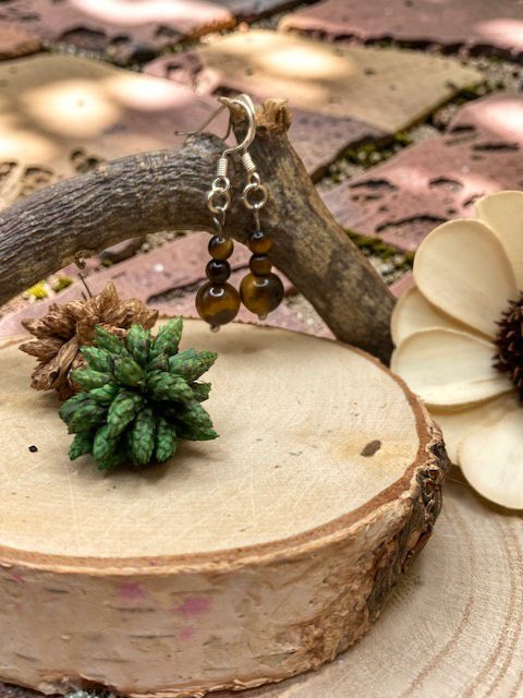 Boucles d'oreilles en pierres naturelles d'Oeil de Tigre de 8 et 4mm.