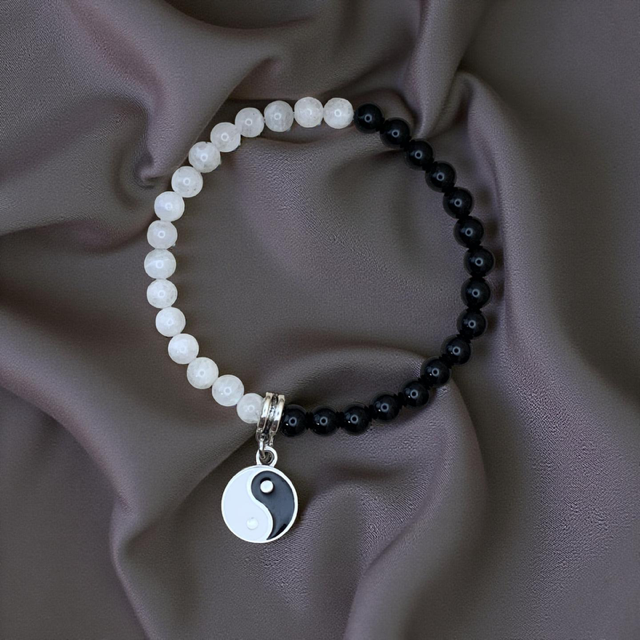 Pensé pour être porté au quotidien, ce bijou allie esthétisme et symbolique : la labradorite blanche est reconnue pour favoriser l'équilibre et l'intuition, alors que l'onyx est associé à la force et à l'ancrage. Un bracelet polyvalent, facile à associer et qui s'adapte aussi bien à un look décontracté qu'élégant.