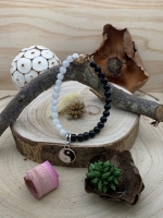 Bracelet en pierres naturelles de Labradorite blanche et Onyx.