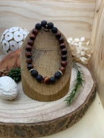 Bracelet en pierres naturelles de Oeil de taureau et Pierre de Lave.