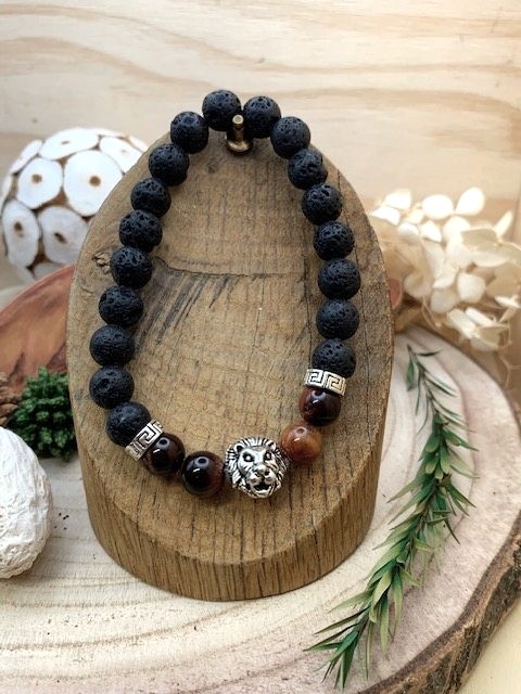 Ce bracelet en pierres naturelles associe la profondeur intense de l'oeil de taureau, à la texture authentique de la pierre de lave. L'alliance de ces deux pierres crée un bijou au caractère affirmé, élégant et intemporel, facile à porter en toute occasion, aussi bien par un homme que par une femme.