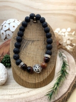 Bracelet en pierres naturelles de Pierre de Lave et Oeil de taureau.